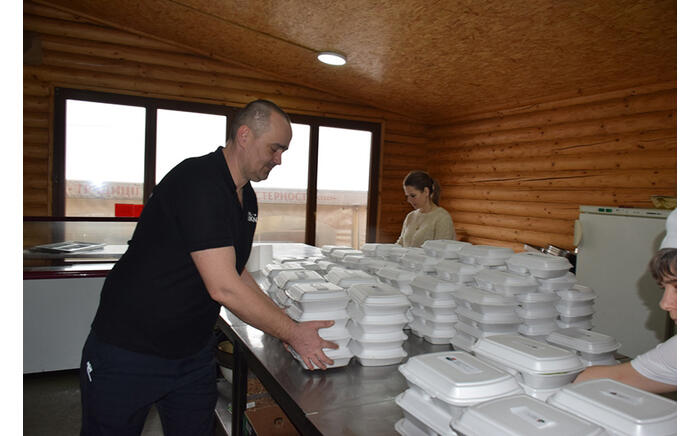 Kudlotyák Krisztina, a program koordinátora elmondta, hogy a kezdeményezés egyik eleme, amit nagyon intenzíven elkezdtünk március 16-án az Egytálétel program, és a lényege az hogy, olyan helyszínekre ahol Kárpátalján sok a menekült, illetve az átmeneti csomópontokon, ahol nincs lehetőség arra, hogy meleg ételt kapjanak, mi mindennap, rendszeresen a megszokott időben egy-egy tál ételt tudjuk kivinni. A kárpátaljai megvalósítását a Kárpátaljai Kultúrkaraván vette át, a program koordinálását és moderálását mi végezzük el. A mai napra már három ilyen helyszínről érkezik az étel. A Helikon Hotel Beregszász és környékét látja el. A Monarchia étterem Munkácsról, ami a Munkács és környékének biztosít ellátást, illetve a harmadik, ami ma nyílt meg ez az Itália Snack and pizza étterem, mely Ungvár és környékét fedi le.